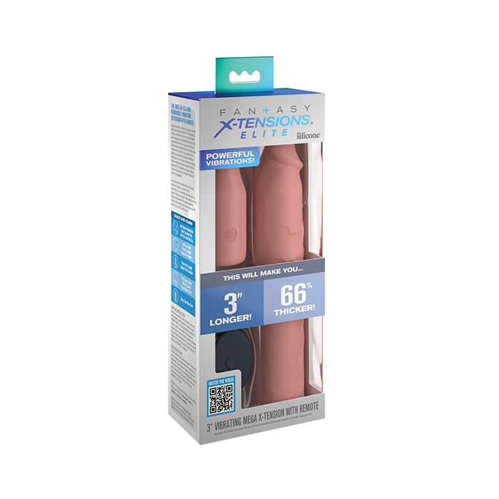 - The 3” Vibrating Mega X-tension with Remote is the first-of-its-kind where you can enhance your length/girth AND vibrate at the same time! Made from ultra-hygienic Elite Silicone™, this performance-enhancement sleeve fits like a glove and feels like a second skin, giving wearers extra length, increased girth, and maximum confidence.